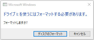microSDカード内のドライブをフォーマットする必要があるというメッセージが表示されますが、「キャンセル」を選んでフォーマットはしないでください。フォーマットしてしまうと、パソコンミニが起動しなくなりますので、十分ご注意ください。